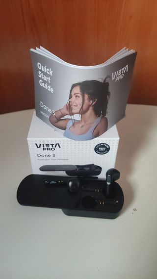 Auriculares inalámbricos Vieta Pro Joy en color negro. Disfruta de audio de alta calidad con tecnología True Wireless. - Diseño ergonómico para mayor comodidad. - Conexión Bluetooth para streaming de audio. - Incluye estuche de carga.