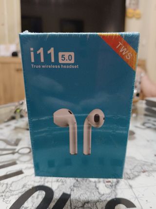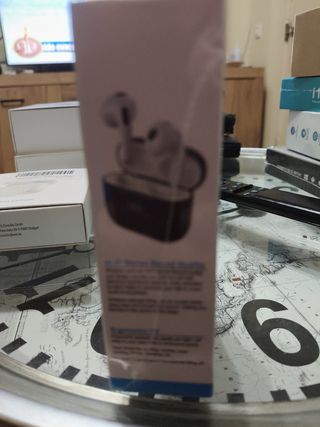 auriculares Bluetooth stereo con caja de carga precintado a estrenar. Si quieres 2 unidades a 6 euros cada una.