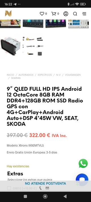 Nuevo con garantía. Si quieres Sonido Hifi con DSP y dac integrado con lo último en tecnología, a buen precio ..... Características Solución global 4G integrada: 9 pulgadas QLED FULL HD Octa-Core DDR4 8GB RAM + 128GB ROM SSD Sistema multimedia GPS Android con CarPlay+Android Auto inalámbricos y DSP dual integrados. USB Tethering. De un vistazo: Procesador Android 12 Octa-Core de 12nm 1.8GHz (Cortex A75 x 2 + Cortex A55 x 6) DDR4 8GB RAM + 128GB SSD ROM, admite aplicaciones de 32 bits y 64 bits Módulo 4G integrado, para todo el mundo (Ranura para microSIM, datos) Compatible con cámaras AHD 1920 * 1080 y 720p Acceso instantáneo a la