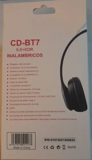 Auriculares inalambricos modelo CD-BT7. - Conexión Bluetooth 5.0+EDR. - Diseño moderno y cómodo. - Controles integrados en el auricular.