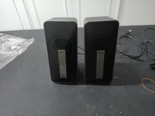 Par de altavoces para ordenador con conexión Bluetooth. - Diseño moderno y elegante. - Controles integrados en la parte frontal. - Sonido nítido y potente.