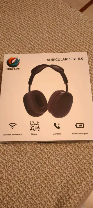 Auriculares inalámbricos de la marca Euro Life con tecnología Bluetooth 5.0. - Conexión inalámbrica. - Ideal para escuchar música. - Permite realizar llamadas. - Batería recargable. Sin abrir . Los vendo porque papá Noel me trajo otros.