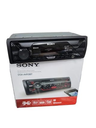 Radio coche Sony DSX-A410BT – Bluetooth, USB, manos libres Características principales: Formato 1 Din. Bluetooth con doble conexión: permite conectar dos móviles a la vez (llamadas y música). Manos libres con micrófono integrado. USB frontal y entrada AUX para música desde móvil o pendrive. Compatible con Android y iPhone (control por voz). Potencia 4×55 W con función EXTRABASS para graves más potentes. Ecualizador de 10 bandas y salida para subwoofer. Reproduce MP3, WMA y FLAC. Radio FM/AM con RDS. Pantalla clara y manejo sencillo. Tamaño estándar 1 DIN, compatible con la mayoría de coches.