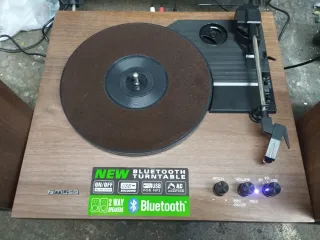 Tocadiscos Muse con conexión Bluetooth y USB. No tengo el cable de conexion, pero se puede probar con uno que tengo de otro aparato. - Función de auto-stop. - Codificación USB para MP3. - Adaptador AC incluido. - Altavoces integrados de 2 vías. - Conexión Bluetooth.