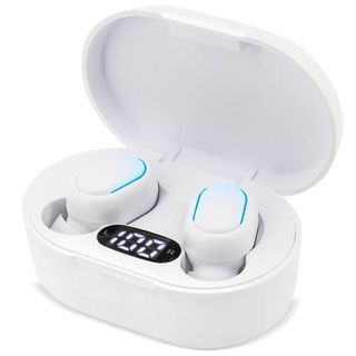 Auriculares inalámbricos Bluetooth con estuche de carga ovalado. Vienen con opción de cancelación de ruido. Incluye cable de carga.
