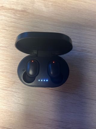 Auriculares inalámbricos Bluetooth con estuche de carga. - Diseño ergonómico. - Indicador LED de batería en el estuche. - Lo vendo con almohadillas sin usar para que el comprador las estrene. En una de las fotos están las almohadillas que incluyo para que sea el propio comprador el que las ponga.