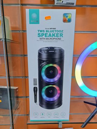 Altavoz Bluetooth Ikrea con micrófono – 45€ 🔊🎤✨ - Altavoz portátil con conexión Bluetooth, sonido potente y claro 📱🔊 - Incluye micrófono para karaoke o eventos 🎉🎤 - Luces LED integradas que cambian al ritmo de la música 🌈🎶 - Batería recargable, ideal para llevar a cualquier parte 🔋🏕️ - Producto nuevo 📦, listo para usar 🆕