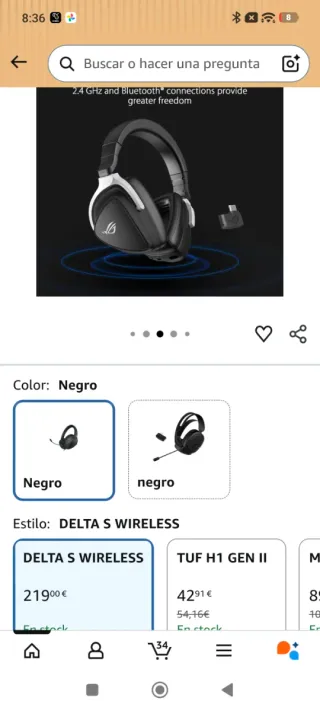 Auriculares inalámbricos ROG Delta S en color negro y blanco. Incluyen adaptadores para diferentes conexiones y almohadillas de repuesto. - Diseño ergonómico. - Almohadillas cómodas. - Conexión inalámbrica de baja latencia a 2,4GHz y Bluetooth La caja esta daña en una lateral pero los auriculares esta nuevos.