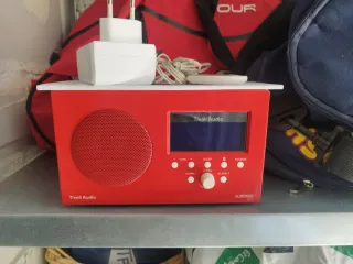Radio Tivoli Audio Albergo en color rojo. Un diseño clásico y elegante. - Bluetooth - Altavoz frontal. - Pantalla digital. - Botones de control. - Marca: Tivoli Audio.