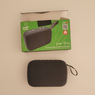 Altavoz Bluetooth ZIU portátil de 5W, color negro. Está en perfecto estado, NO SE HA USADO NUNCA. - Dispone de conectividad Bluetooth, USB, y tarjeta SD. - Es compacto y ligero, ideal para llevarlo contigo a cualquier parte, cabe en un bolsillo.