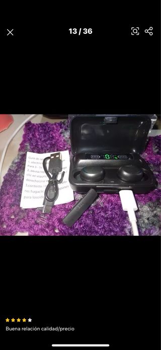 Auriculares Bluetooth inalámbricos en muy buen estado, prácticamente nuevos. Son ligeros, cómodos y con buena calidad de sonido, ideales para música, llamadas o ver vídeos sin cables.