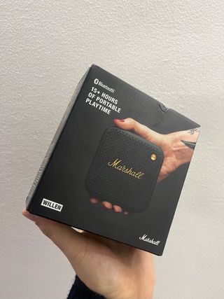 Altavoz portátil NUEVO SIN ABRIR Marshall Willen en color negro. Disfruta de hasta 15 horas de reproducción continua. - Conexión Bluetooth. - Diseño compacto y resistente.