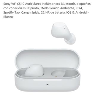 Nuevos a estrenar. Sony WF-C510 Auriculares Inalámbricos Bluetooth, pequeños, con conexión multipunto, Modo Sonido Ambiente, IPX4, Spotify Tap, Carga rápida, 22 HR de batería, iOS & Android - Blanco