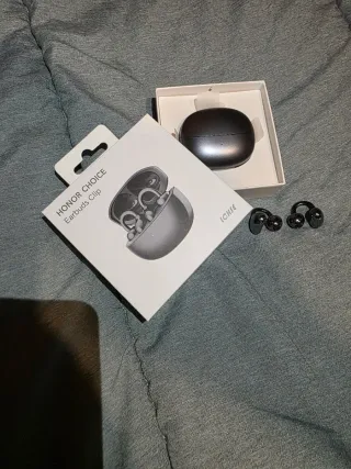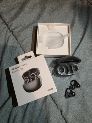 Auriculares inalámbricos Honor Choice Earbuds Clip en color negro y gris. - Diseño ergonómico para un ajuste seguro. - Estuche de carga compacto.
