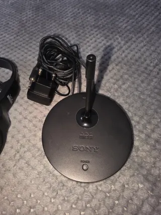 Auriculares inalámbricos de la marca Sony. Funcionan pero no tienen pilas. - Diseño circumaural. - Almohadillas cómodas. - Base transmisora incluida.