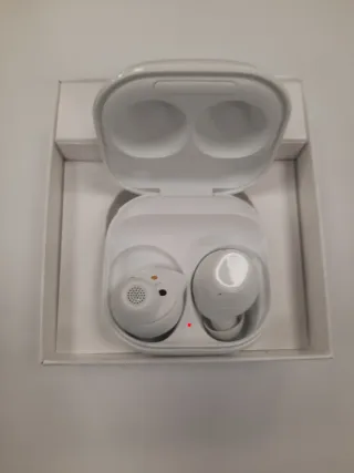 Auriculares inalámbricos Samsung Galaxy Buds FE en color blanco. - Diseño ergonómico para un ajuste cómodo. - Sonido de alta calidad. - Estuche de carga compacto.