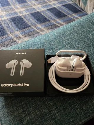 Auriculares inalámbricos Samsung Galaxy Buds 3 Pro en color blanco.NO HAGO ENVIOS ENTREGA EN MANO EN ALCORCON MADRID.SIN ALMOHADILLAS DE REPUESTO!!!!! - Diseño elegante y moderno. - Incluye estuche de carga. - Cable de carga USB-C.