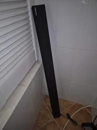 Barra de sonido Samsung HW-MS550/ZF en color negro. - Diseño elegante y moderno. - Sonido envolvente de alta calidad. - Incluye mando a distancia, cable de corriente y cable de audio digital (óptica) Funciona perfectamente y está en perfecto estado, excepto por un pequeño detalle en una de las esquinas (de ahí la rebaja en el precio). ⚠️ NO SE REALIZAN ENVÍOS