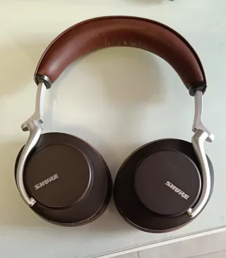 Auriculares de diadema (cascos) de Shure con Cancelación de Ruido y control para llamadas. Está muy bien conservados, los compré hace 1 año y medio y los he cuidado mucho. Funcionan perfectamente. Los vendo porque me han regalados otros. Tienen su funda original. Solo tienen marcas de uso en la parte gris, está un poco desgastado el esmalte, se puede ver en las fotos.