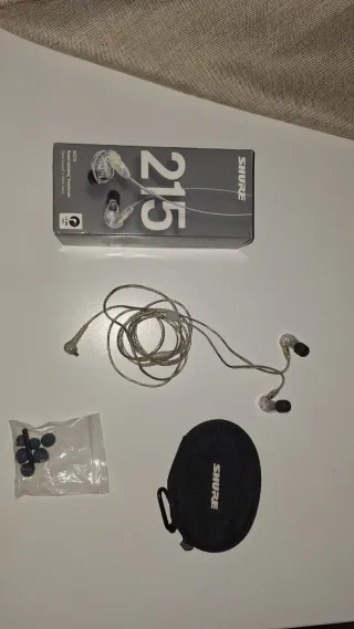 Shure SE215 en color transparente. Auriculares in-ear profesionales (con caja y accesorios) Vendo auriculares Shure SE215 en muy buen estado. Son in-ear profesionales, conocidos por su gran aislamiento, sonido claro y graves potentes. Ideales tanto para escuchar música como para uso en directo o estudio. Incluye todo lo original: – Caja original – Instrucciones – Estuche de transporte – Almohadillas de recambio (varios tamaños) Siempre bien cuidados y funcionando perfectamente, solo un año de uso. Los vendo porque ya no los uso. Entrega en mano o envío por Wallapop.
