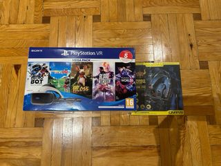 Megapack de de VR agotado en tiendas. Está nuevo, ya que ha sido utilizado muy pocas veces. La diferencia con el pack normal es el set de juego que incluye: Astrobot + Golf VR + Moss + Blood & truth. Los cuales se adquieren a través de un código, el cual va obviamente incluido en la caja. Aparte, incluye todo lo del pack normal: 1 x Caja original 1 x Casco de RV 1 x Auriculares estéreo (con almohadillas) 1 x Procesador 1 x Adaptor AC 1 x Cable HDMI 1 x Cable USB 1 x Cable de alimentación 1 x Cable de conexión de casco RV 1 x Cascos gaming (regalo) En la última imagen se puede ver todo lo que viene con la caja. Envío 24-48 horas.