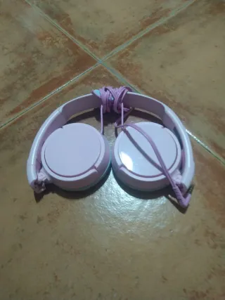 Auriculares Sony de color rosa. Están en buen estado, aunque presentan algunas marcas de uso que no afectan a su funcionamiento