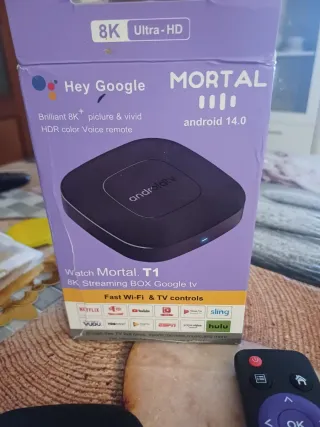 Disfruta de tus contenidos favoritos con este TV Box. - Soporta resolución 8K Ultra-HD. - Incluye control remoto por voz. - Funciona con Android 14.0. - Compatible con Google TV. - Acceso rápido a apps como Netflix, YouTube, Sling y más.