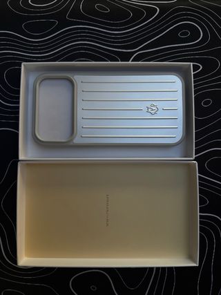 Funda para iPhone 17 Pro Max con el distintivo diseño de RIMOWA. - Diseño acanalado icónico. - Acabado plateado.