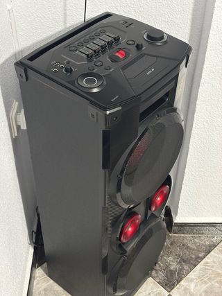 Altavoz de torre Poss PSBTST400 en color negro. Cuenta con un diseño vertical y moderno. - Múltiples altavoces para un sonido potente. - Panel de control superior con botones y diales. - Entrada para micrófono.