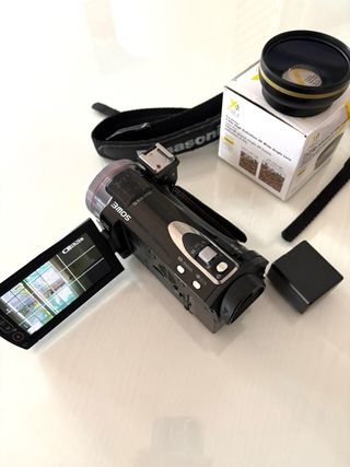 Videocámara Panasonic HDC-TM900 en color negro. - Grabación Full HD 1920x1080 Progressive. - Sensor 3MOS. - Lente Leica Dicomar. - Zoom óptico 20x. - Objetivo 0,45x/ macro accesorio. - Estabilizador de imagen O.I.S. - Memoria interna de 32 GB. - Compatible con tarjetas SD/SDHC/SDXC. - 2 Baterías - Cargador de batería - Correa original - Accesorio para luz auxiliar Impecable. Sin golpes ni rayones. Ideal para videos profesionales montada en trípode.