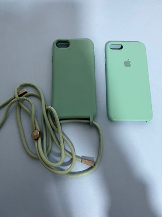 Funda de móvil en color verde, con un diseño moderno y práctico. - Incluye un cordón ajustable para llevarla cruzada. - Material de silicona suave al tacto. - Diseño elegante con detalles metálicos. - Una de ella es original de apple