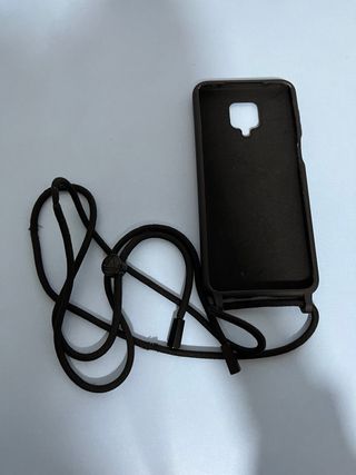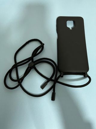 Funda protectora para móvil Redmi Note 9 Pro con una práctica cuerda para llevarla colgada. - Color negro. - Cuerda negra ajustable. - Diseño moderno y funcional.