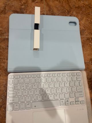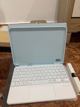 Teclado con funda para tablet, color azul claro. Está nueva - Incluye teclado inalámbrico y funda protectora. - Diseño elegante y compacto. - Funda de silicona suave al tacto. 10’1 pulgada
