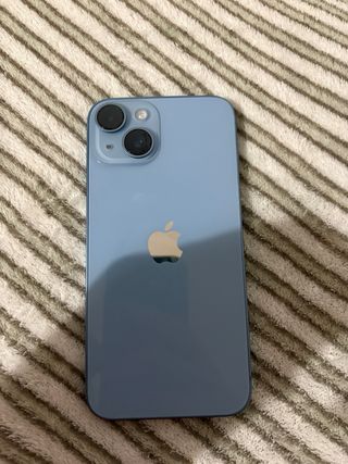 Teléfono móvil iPhone 14 en color azul. - Capacidad de almacenamiento de 128GB. Unico desperfecto la inapreciable marca en el chasis que no afecta a nada de telefono incluye su cable original y una cabeza