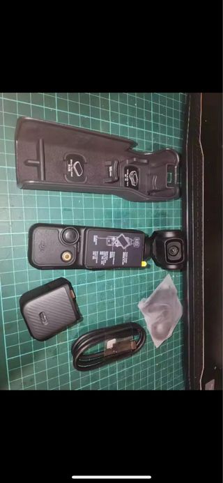 Cámara de acción DJI Osmo Pocket 3 en color negro. Incluye accesorios para su uso y transporte. - Estuche de protección. - Correa de muñeca. - Cable de carga USB-C. - Adaptador adicional.