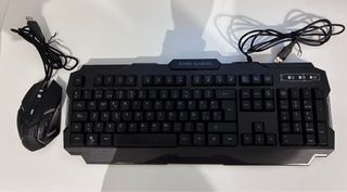 Conjunto de teclado y ratón en color negro. - Teclado con diseño gaming. - Ratón ergonómico.