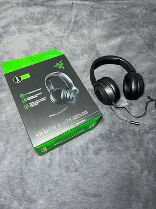 Cascos gaming Razer Kraken X Lite con conexión por cable de 3.5 mm. - Sonido envolvente 7.1. - Micrófono cardioide flexible. - Diseño ultraligero con almohadillas de espuma viscoelástica. - Compatibles con PC, Mac, PlayStation, Switch y smartphones.