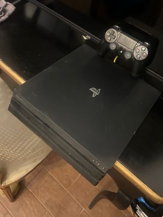 Consola PlayStation 4 Pro en color negro, junto con un mando DualShock 4 original. - Mando original en perfecto estado. - Incluye consola y mando.