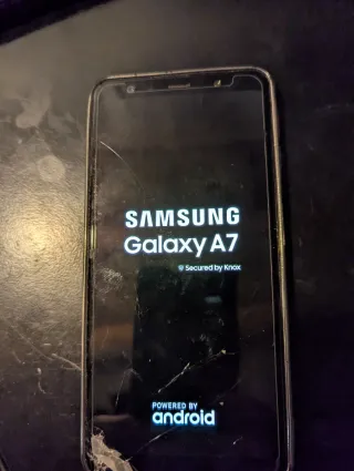 Teléfono móvil Galaxy Samsung. - Modelo Galaxy A7. - Pantalla con protección Secured by Knox. - Sistema operativo Android. - Pequeño golpe esquina inferior que no afecta para nada su funcionamiento. - Ampliable hasta 512 GB. - Hago envíos.