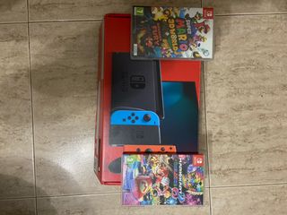 Consola Nintendo Switch con todos sus accesorios originales. Incluye dos videojuegos. - Color azul y rojo de los Joy-Cons. - Super Mario 3D World + Bowser's Fury. - Mario Kart 8 Deluxe.