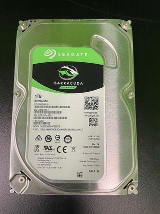 Disco duro interno Seagate BarraCuda de 1TB. - Modelo: ST1000DM010 - Capacidad: 1TB - Interfaz: SATA - Fabricado en Tailandia