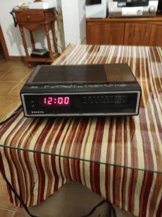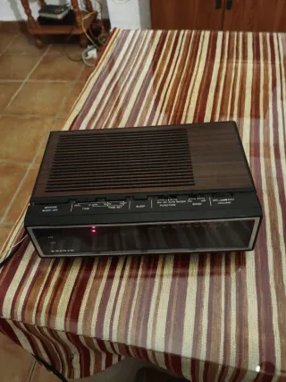 Radio despertador Sanyo con un diseño clásico y funcional. Ideal para tener en tu mesita de noche. Funciona, aunque precisa de algún matenimiento. Tiene sus años... - Pantalla digital. - Botones de control en la parte superior. - Altavoz integrado.