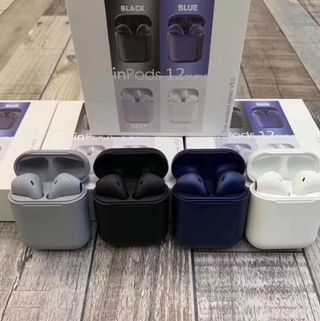 Auriculares inalámbricos bluetooth recargables Inpods. Versión: 5.0. Capacidad de la batería: 35mAh / 350mAh. Entrada: DC5V. Distancia de transmisión: 12 m. , Tiempo de uso: 2 a 2,5 horas. Tiempo de carga: 1 hora. Tiempo en estado de espera: 100 horas. , Medidas de la caja: 4,3 cm de ancho x 5,6 cm de alto x 2 cm de profundidad. Medidas del auricular: 4 cm de alto. , Colores disponibles: blanco, azul, gris y negro. Modelo: Inpods i12. Ref: V-6648. ,