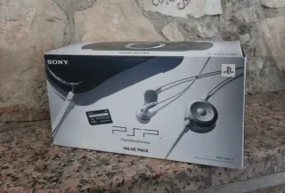 Caja original para el pack de valor de Sony PSP. - Incluye la caja exterior. - Contiene la imagen de los auriculares y la Memory Stick Duo de 32MB. Juego demo.