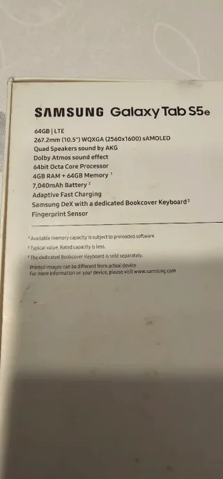 Tablet delgada y ligera con pantalla de 10.5 pulgadas. - 4 gb de ram y 64 GB de memoria interna. - 5,5 mm de grosor y 400 g de peso. - Pantalla sAMOLED 10.5 pulgadas - Conexión 4G ( bandeja para tarjeta SIM y SD) - Sonido AKG audio envolvente 3D de dolby atmos (4 altavoces). - Batería de carga rápida de 7 .040 mAh - Diseño elegante en color negro y parte trasera plateada. - Ideal para entretenimiento y productividad. - Lector de huella en boton de encendido. - se incluyen 2 protectores de pantalla cristal templado sin estrenar. - Funda goma EVA color negro. - Caja original e instrucciones. ( pequeñísima rallada en la pantalla)