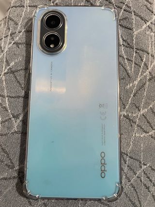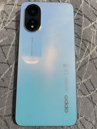 Teléfono móvil Oppo A18 con un acabado degradado entre azul y plateado. - Diseño elegante y moderno. - Cámara trasera dual. - Pantalla nítida. - Tiene 128gb de almacenamiento 4gb+4gb de RAM - Se a usado muy poco, ni un golpe - Precio negociable - Regalo funda transparente
