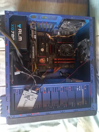 Ordenador de sobremesa con un diseño llamativo. Procesador AMD FX-4300 QuadCore 8GB RAM Placa base MSI 970 Gaming MS-7693 Grafica Nvidia 960 Windforce (3 ventiladores) SSD 223GB Kingston sa400s37240g Fuente de alimentación RLM XG700 (700W) Caja NoX 5 ventiladores