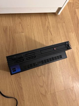 Consola PlayStation 2 en color negro, ideal para revivir tus juegos favoritos. - Incluye volante con pedales. - Incluye mando DualShock 2. - Incluye fuente de alimentación.