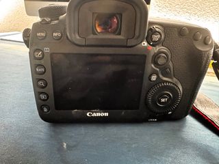 Cámara réflex digital Canon EOS 5D Mark IV en color negro. - Cuerpo de cámara. - Tapa del cuerpo. - Correa para el cuello.