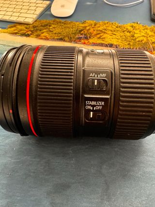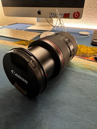 Objetivo Canon Serie L con estabilizador de imagen. - Montura Canon EF. - Apertura constante f/4. - Enfoque USM (Ultrasonic Motor). - Incluye tapa frontal.